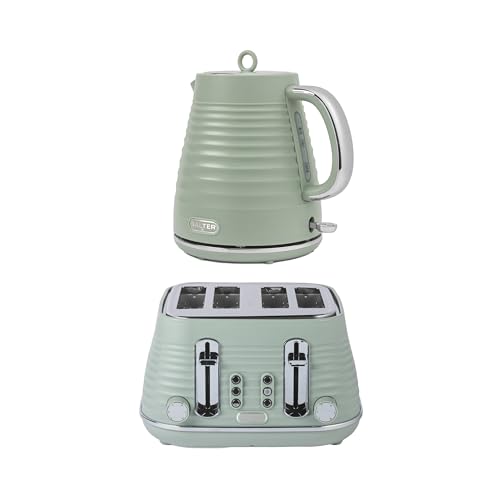 Salter Toaster & Kettle Ripple Set 4-Slice 6 Browning Levels 1.7L 3kW Sage