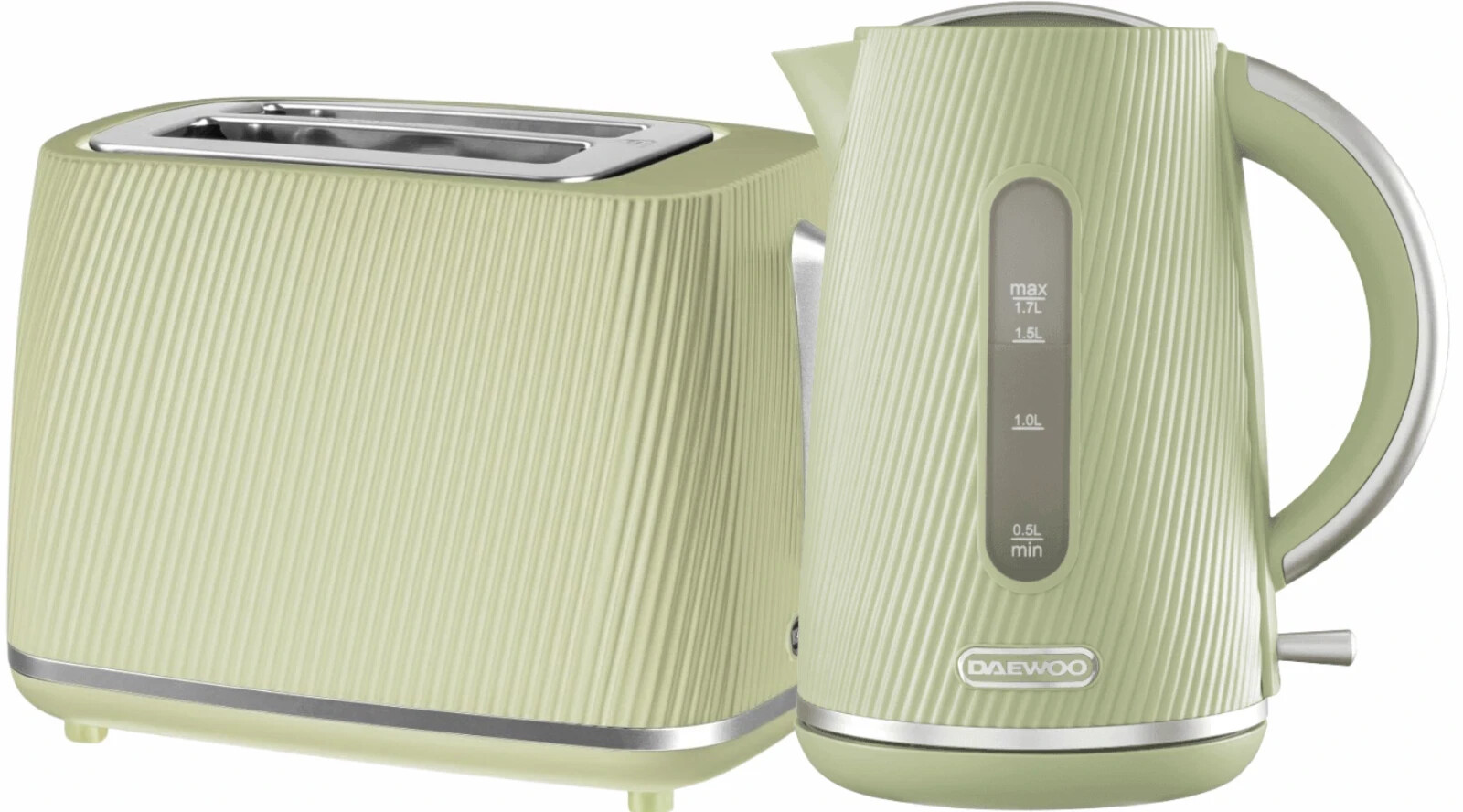 Daewoo Cascade 1.7L Jug Kettle and 2 Slice Toaster Sage Ribbed Texture Design