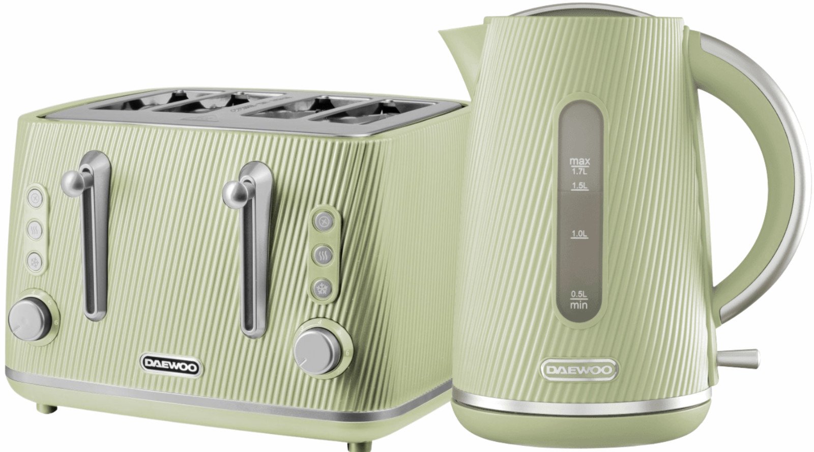 Daewoo Cascade 1.7L Jug Kettle and 4 Slice Toaster Sage Ribbed Texture Design