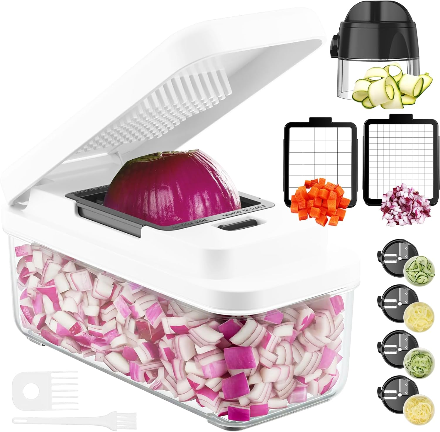 4-in-1 Vegetable Chopper Onion Chopper Food Chopper Manual Spiralizer - Salad Chopper Veg Dicer Veg Chopper - Potato Cutter Onion Dicer Vegetable