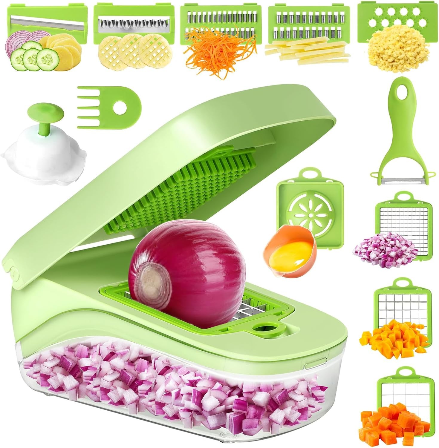 Vegetable Chopper - Mandoline Slicer, Onion Veggie Food Chopper with Container, Cucumber Potato Slicer, Salad Chopper Tool, 15 in 1 Kitchen Gadgets, Perfect for House Warming Gifts