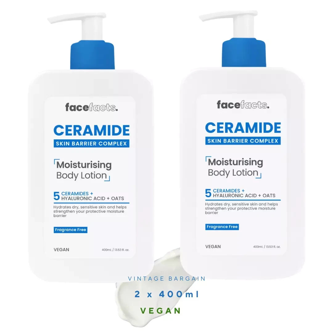 2x 400ml Face Facts Ceramide Moisturising Body Lotion With Hyaluronic Acid