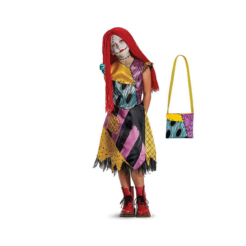 Sally Costume for Girls Sally Dress with Christmas Red Wig Arm Warmers Long Trousers Shoulder Bag Scary Horror Film Transformation as a Gift for Halloween Carnival Fancy Dress Party (120 cm)