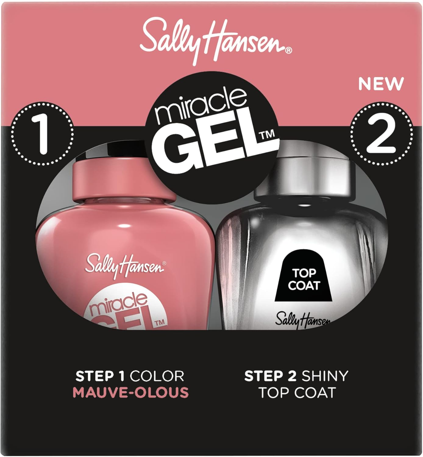Sally Hansen Miracle Gel Duo Pack, Mauve-Olous and Top Coat, Gel-Like Nail Polis