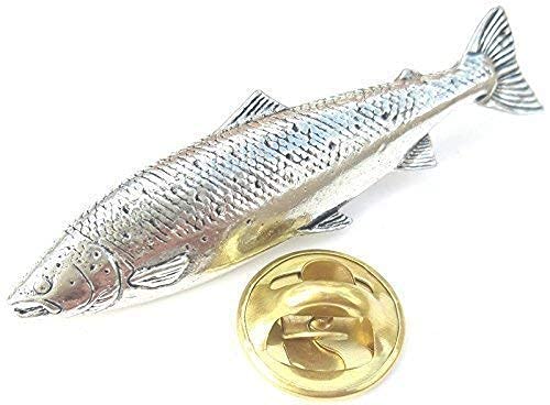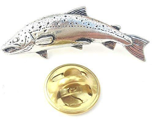 Emblems-gifts Atlantic Salmon Fish Handcrafted from English Pewter in the UK Lapel Pin Badge + 59mm Button Badge + Gift Bag