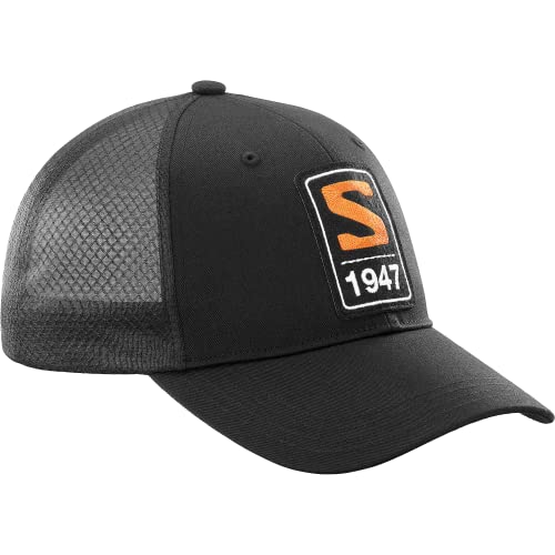 Salomon Logo Trucker Cap for Men, Breathable Trucker Cap for Trail Running, Hiking, Outdoor Sports, Classic Style, Deep Black, S/M