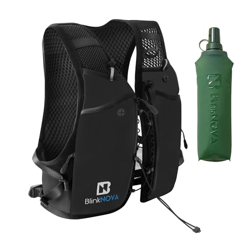 BlinkNOVA Running Hydration Vest with Front Cord – Lightweight Breathable Unisex Running Vest for Men & Women, Includes 500ml Soft Flask, Phone Holder, Reflective Trail & Marathon Running Pack (M/L)