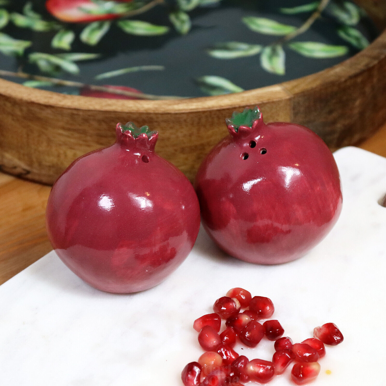 Pomegranate Salt And Pepper Shaker Set Purple Ceramic Kitchen Summer Fruit Cruet