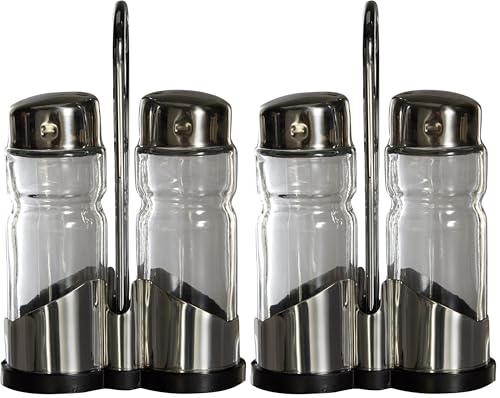 Ibili Clasica Salt and Pepper Shaker Set with Holder, Stainless Steel, Silver/Transparent, 27 x 12 x 6 cm (Pack of 2)