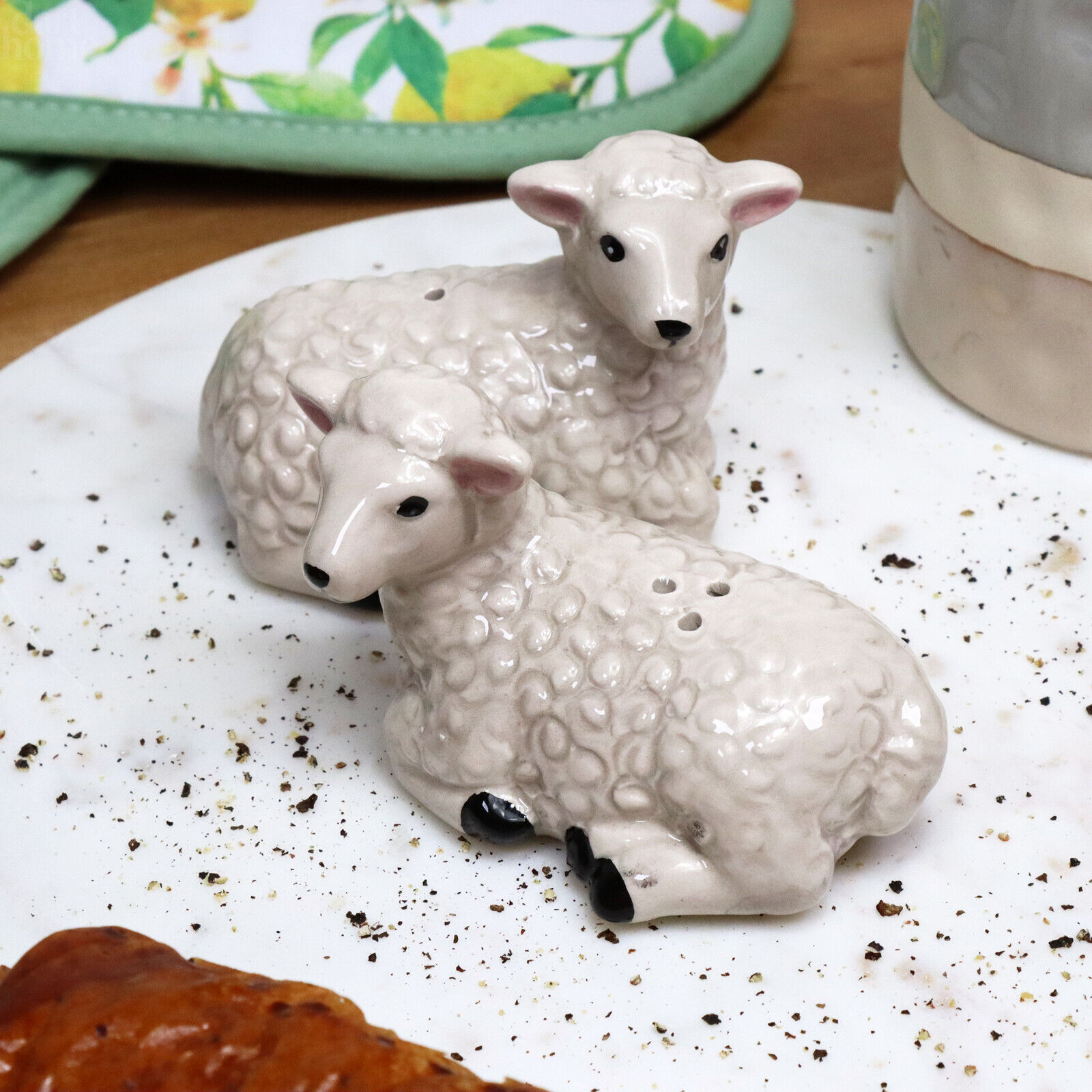Salt And Pepper Shaker Set Lying Sheep Ceramic White Farm Animal Condiment Pots