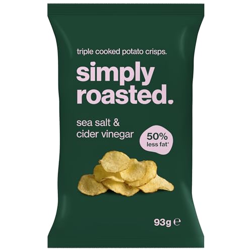 Simply Roasted - Sea Salt & Vinegar Crisps | 12 x 93g Sharer Bags | Tangy & Salty | 50% Less Fat | Under 99 Calories Per Serve | Triple Cooked for the Ultimate Crunch | Vegan | Gluten & Allergen-Free