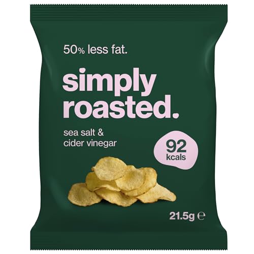 Simply Roasted - Sea Salt & Vinegar Crisps | 24 x 21.5g Impulse Bags | Tangy & Salty | Vegan | 50% Less Fat | Under 99 Cals Per Serve | Triple Cooked for the Ultimate Crunch | Gluten & Allergen-Free