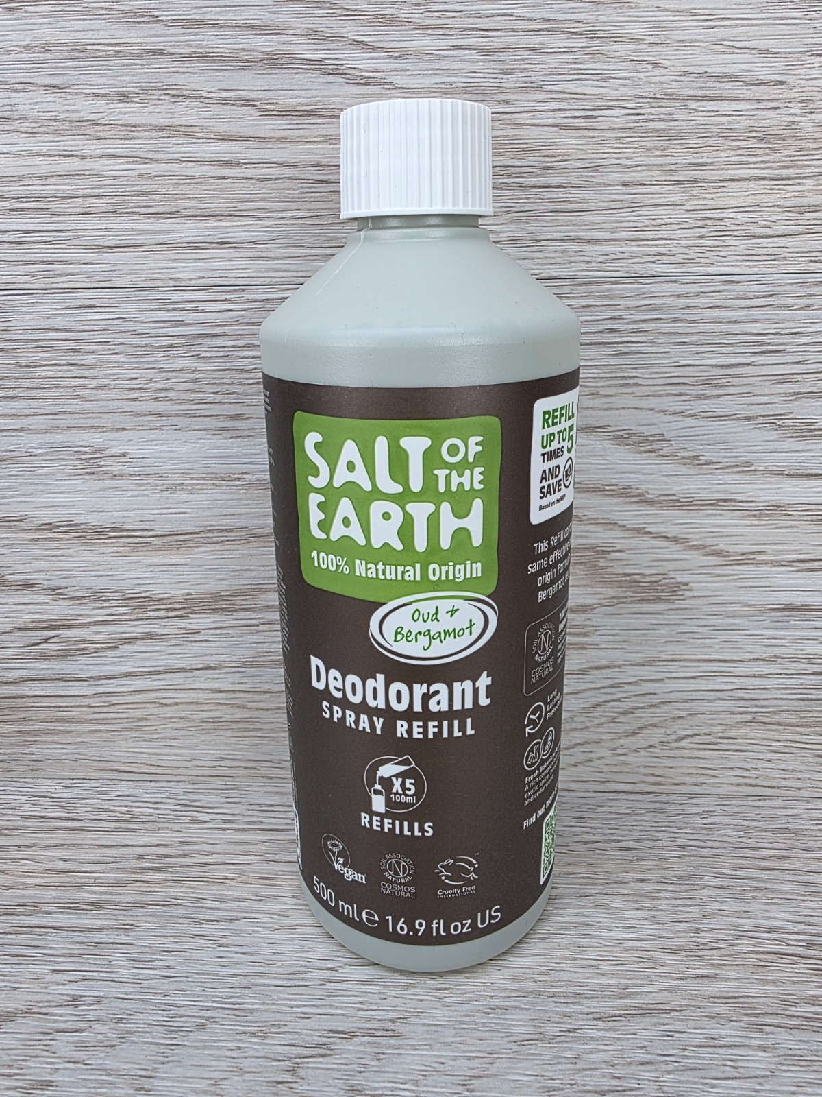 Salt of the Earth - Natural Deodorant Spray Refill - Oud & Bergamot - 100% Natural Origin Ingredients - Vegan - Suitable for Men, Women & Children -