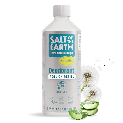Salt of the Earth - Natural Deodorant Roll on Refill - x7 Uses - Unscented -100% Natural Origin Ingredients - Vegan - Suitable for Men, Women & Children - 525ml