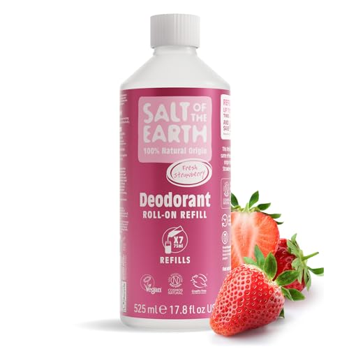 Salt of the Earth - Natural Deodorant Roll on Refill - x7 Uses - Fresh Strawberry -100% Natural Origin Ingredients - Vegan - Suitable for Men, Women & Children - 525ml