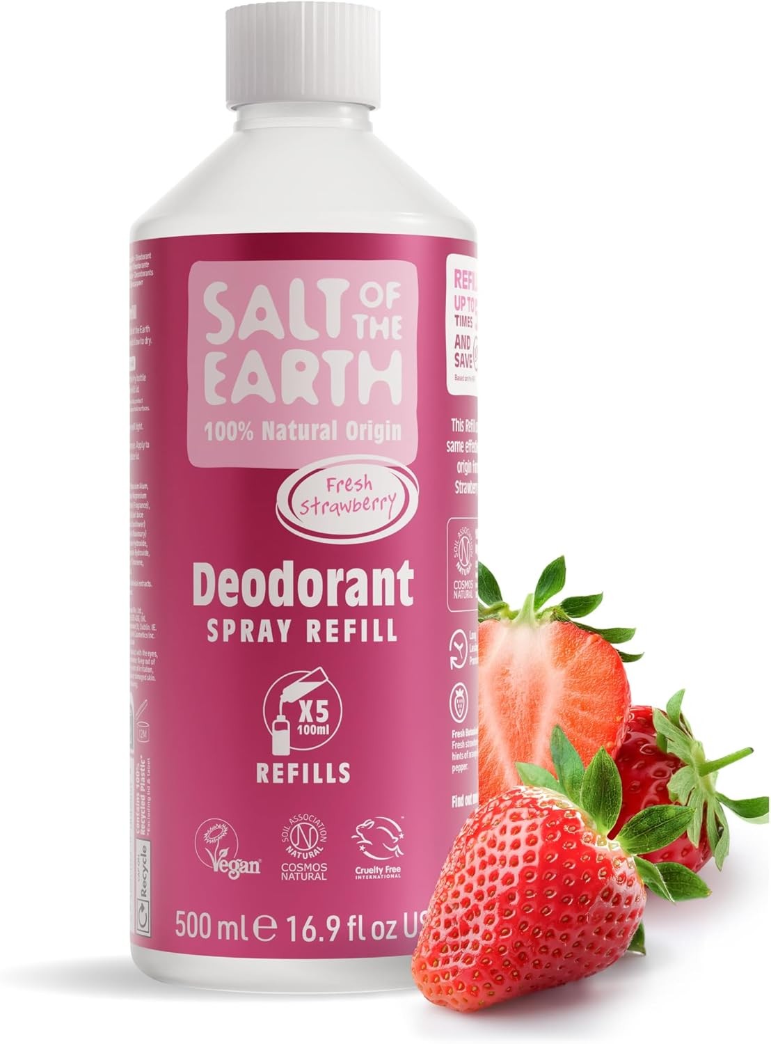 Salt of the Earth - Natural Deodorant Spray Refill - Sweet Strawberry - 100% Natural Origin Ingredients - Vegan - Suitable for Men, Women & Children - 500ml