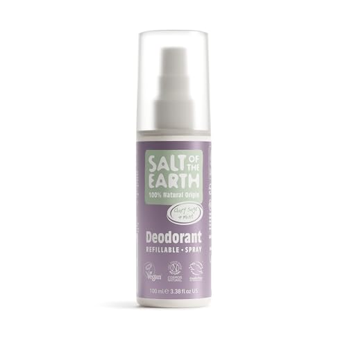 Salt of the Earth - Refillable Natural Deodorant Spray - Vegan & Cruelty Free - Certified 100% Natural Origin Ingredients - Suitable for Men, Women & Kids - Clary Sage & Mint - 100ml