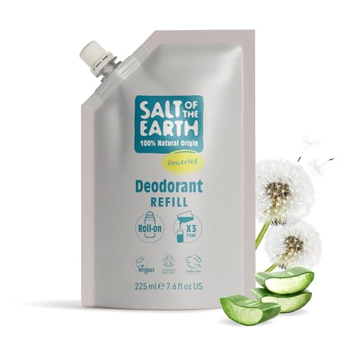 Salt of the Earth - Natural Deodorant Roll On Refill Pouch, x3 Uses - Unscented - Vegan, Long Lasting Protection, Leaping Bunny Approved, Made in the UK - 225ml