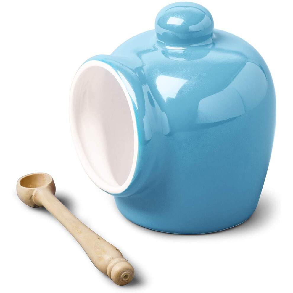 Wm Bartleet & Sons Traditional Porcelain Small Salt Pig with Wooden Salt Serving Spoon - Blue