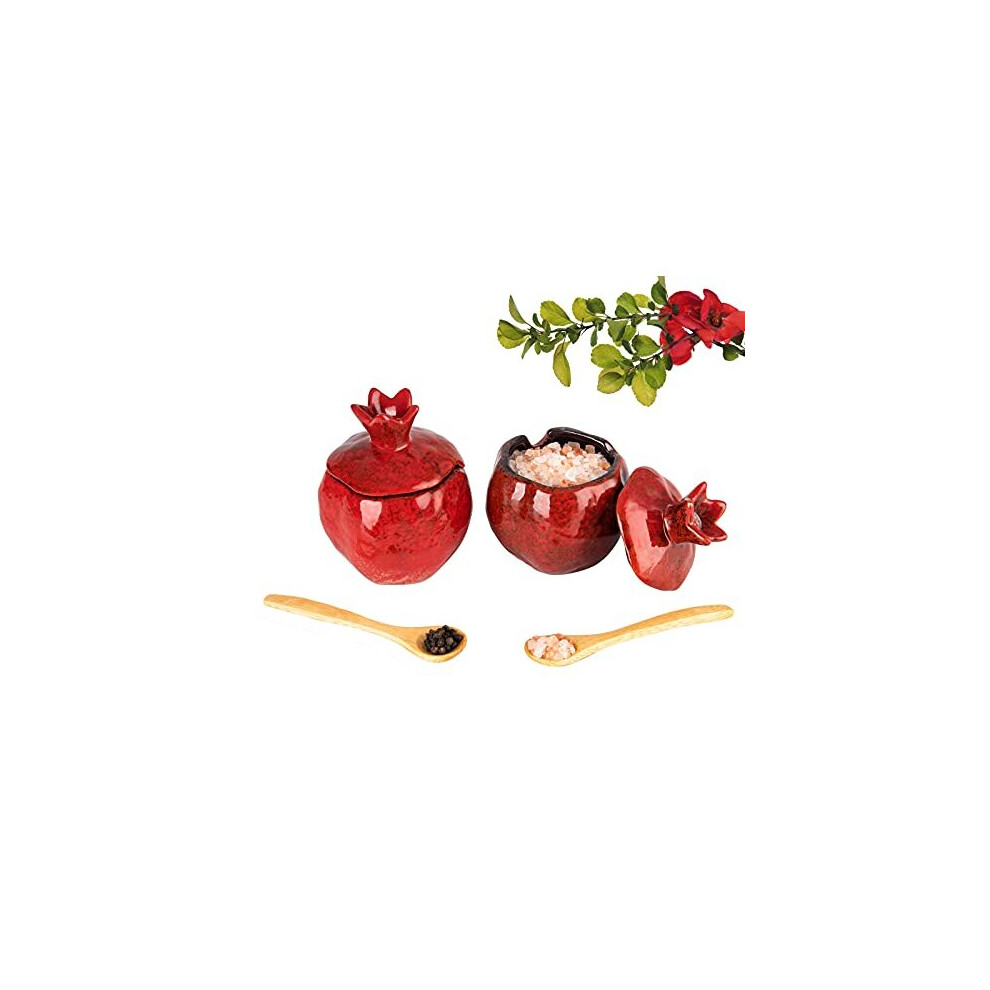 Salt Cellar Salt Box Salt Container Salt Pig Salt Bowl Salt Cellar With Lid Spoon Ceramic Pomegranate Shaped