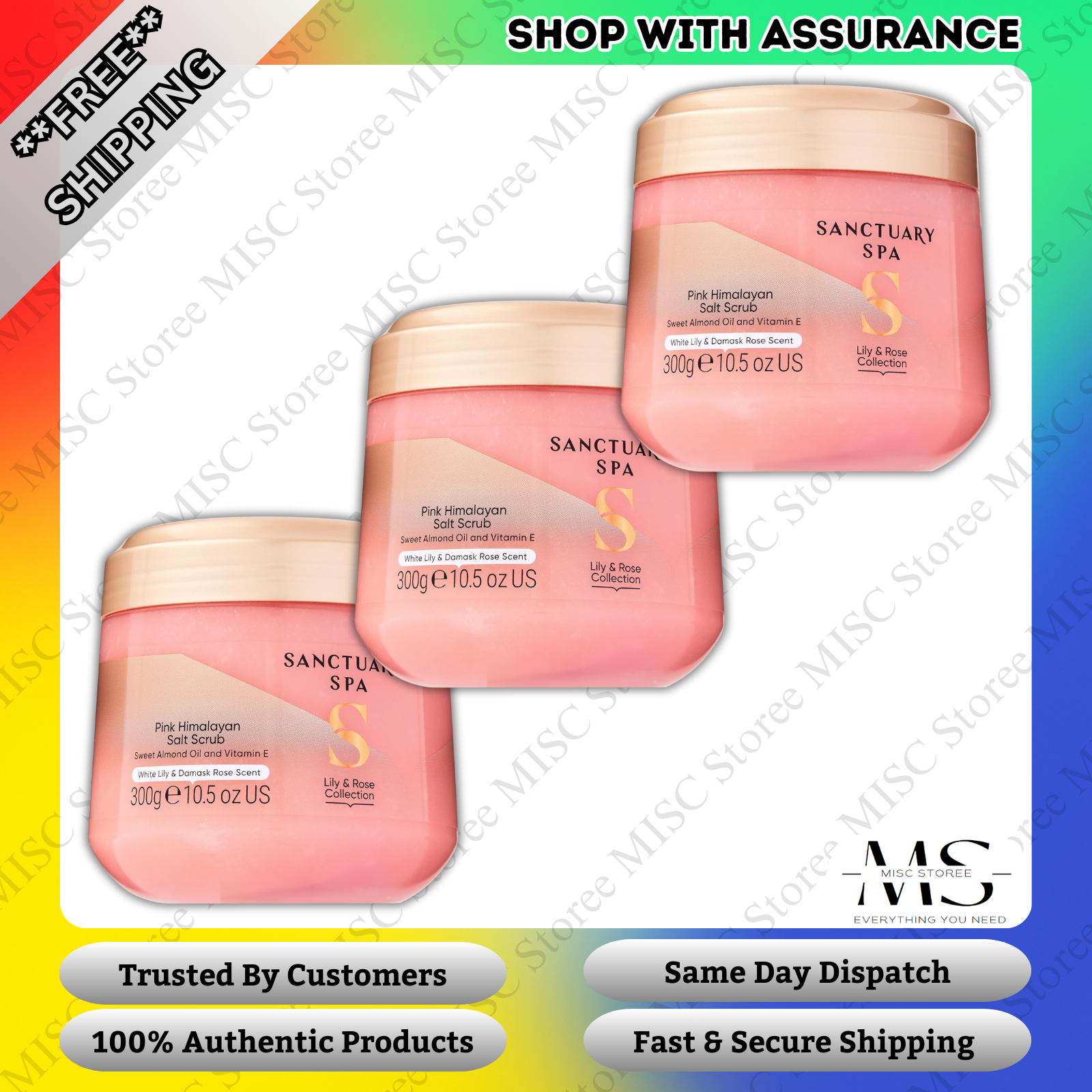 3x Sanctuary Spa Lily & Rose Salt Body Scrub 300g Vegan - New