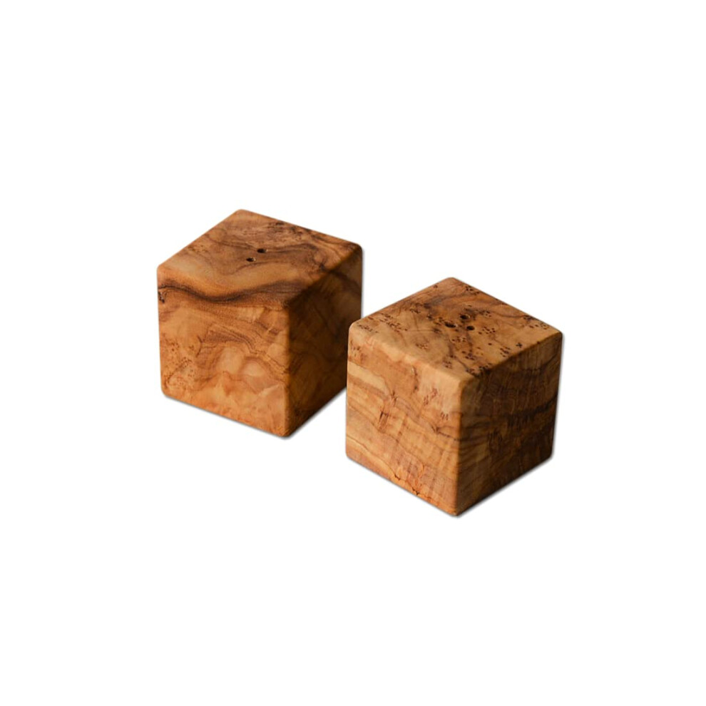 D.O.M. Salt and/or pepper shaker cubes made of olive wood., Salzstreuer