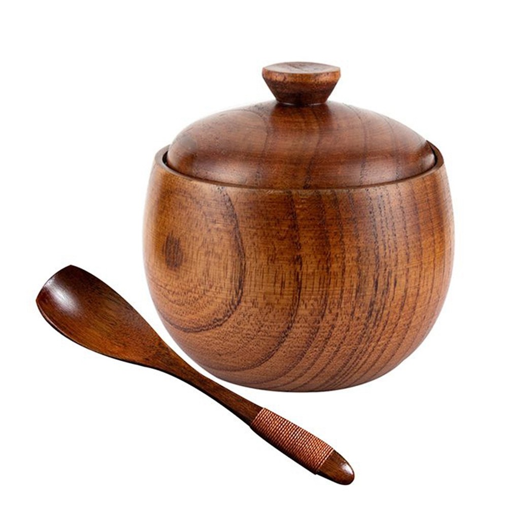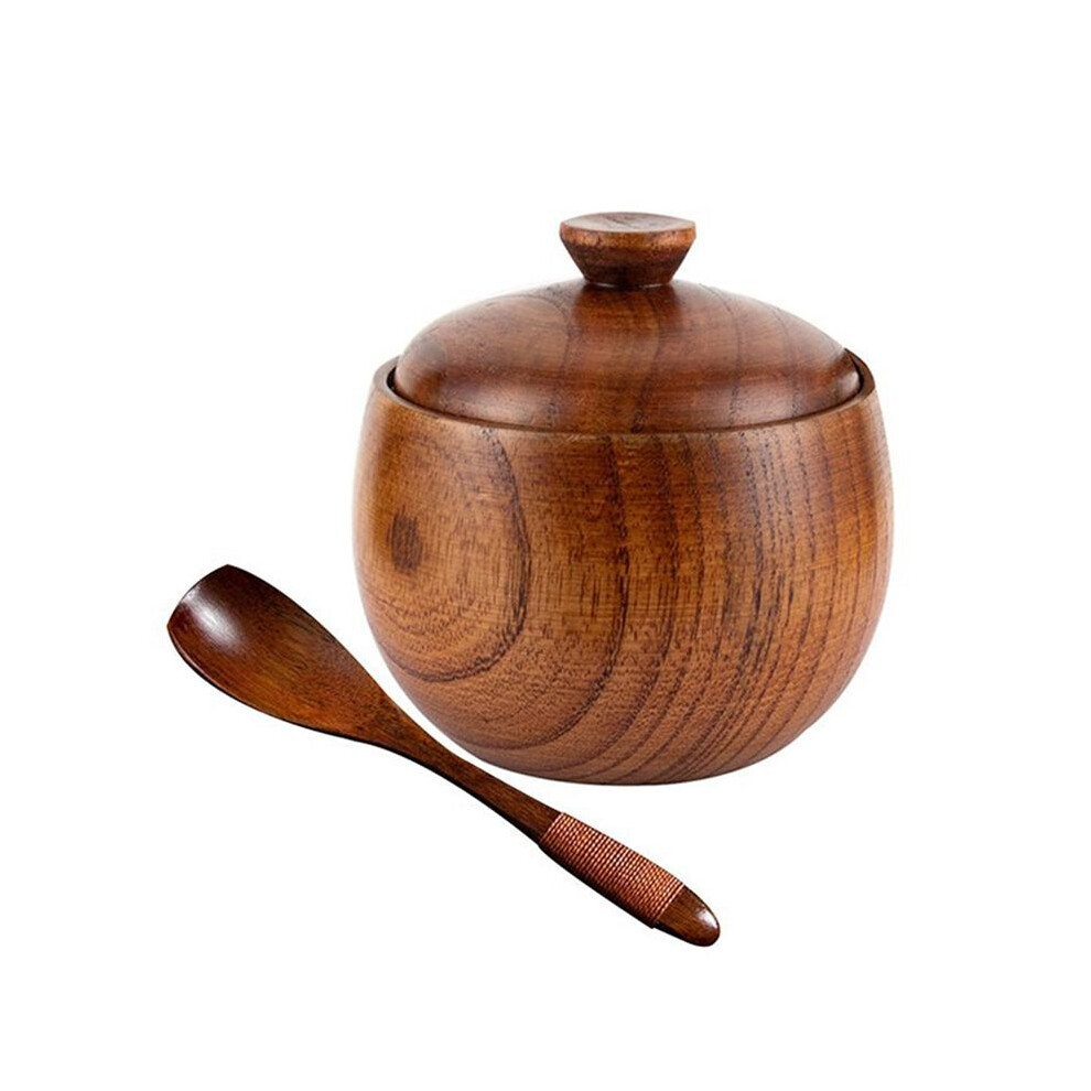 Salt Shaker Sugar Shaker Pepper Box Salt Seasoning Container Storage Box with Lid and Spoon Wooden Spice Jar