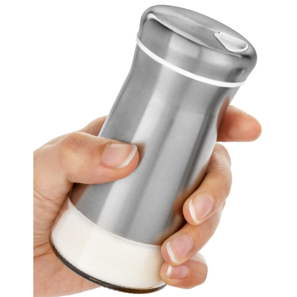 Salt Shaker or Pepper Shaker with Adjustable Pour Holes - Elegant Stainless Steel Spice Dispenser - Perfect for Himalayan, Table Salt, White and Black