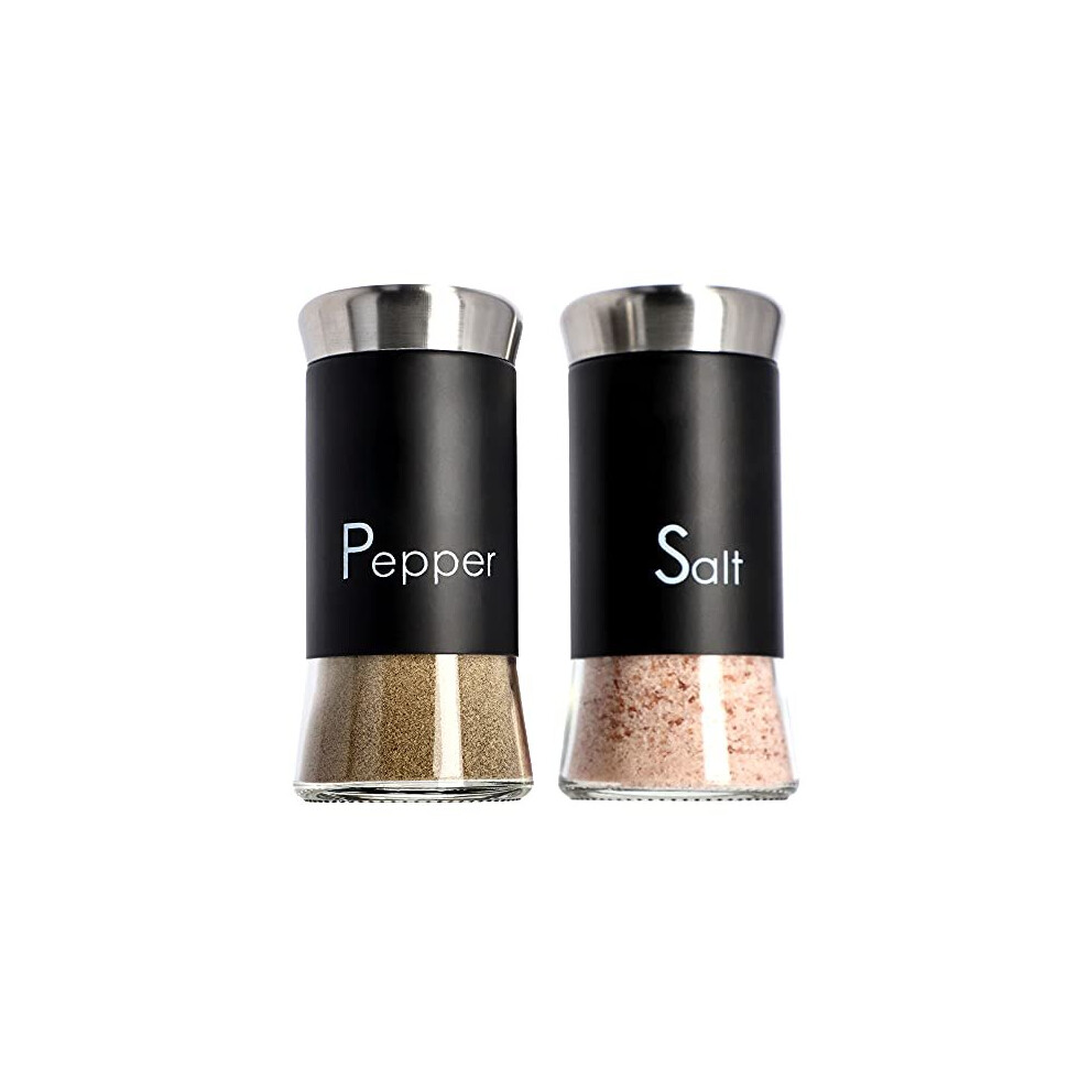 HOME EC Original Glass Salt and Pepper Shakers Set with Adjustable Pour Holes - Stainless Steel Salt Shaker and Pepper Shaker - Farmhouse Salt and Pep