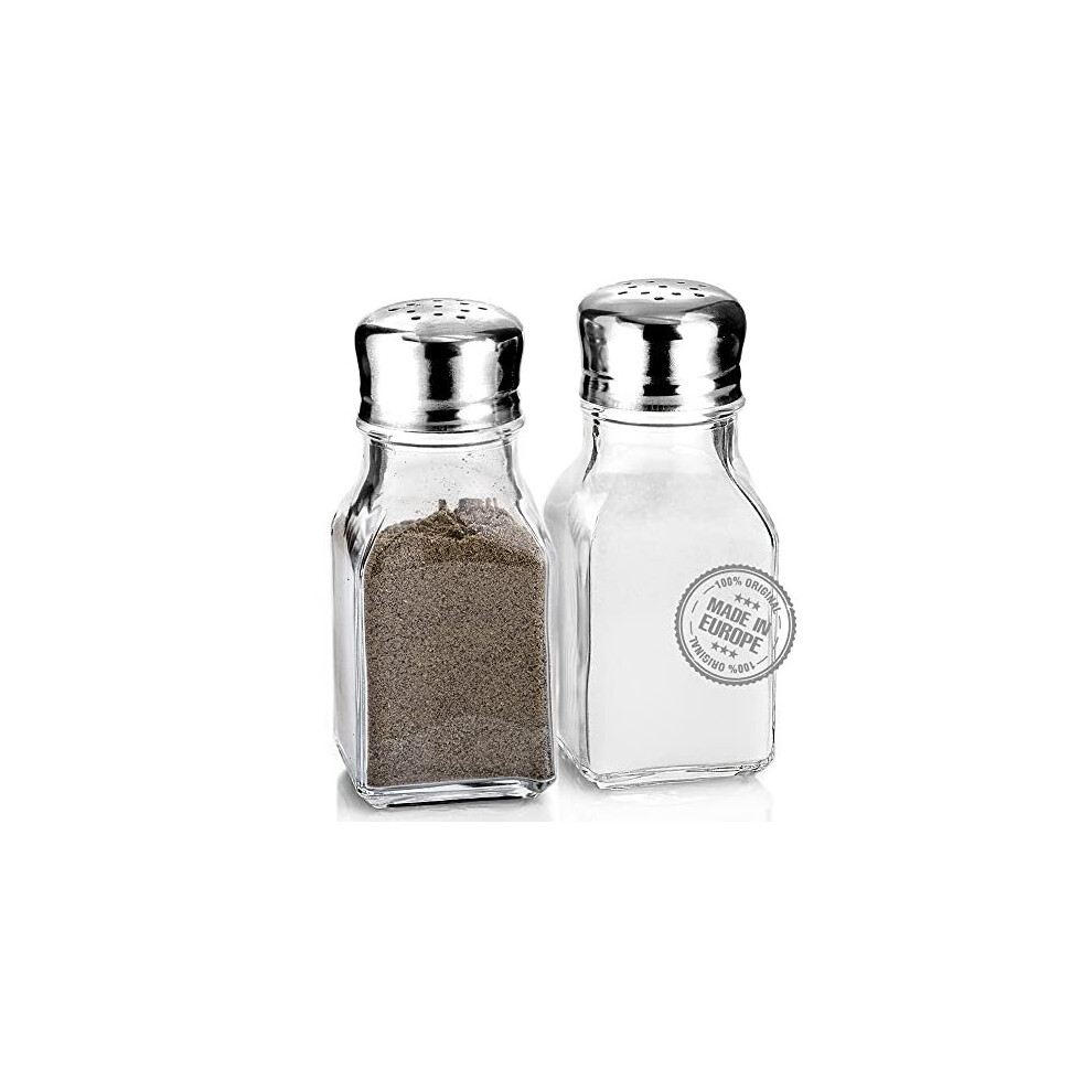 CRYSTALIA Salt and Pepper Shakers Glass Set, 100% Lead Free Salt Shaker with Stainless Steel Lids, Salt Shaker, Pepper Shaker, Spice Shaker, Salt