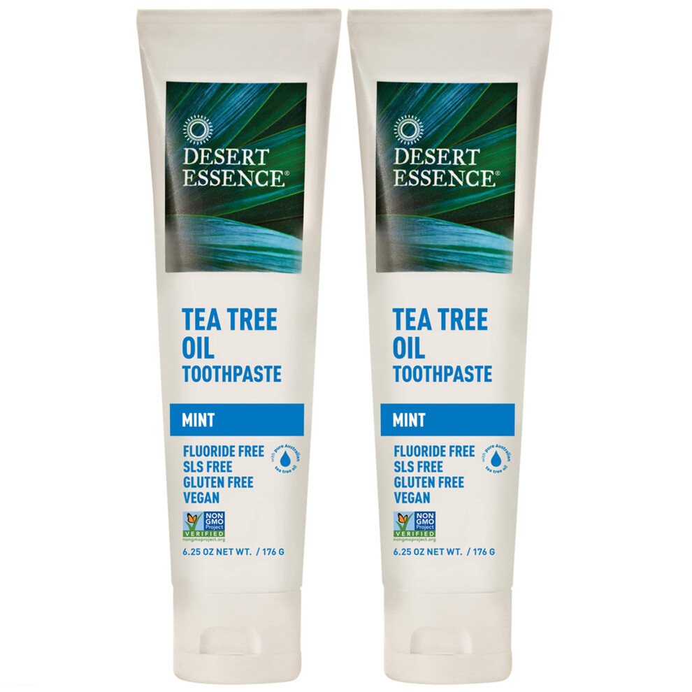 Desert Essence Tea Tree Oil Toothpaste - Mint - 6.25 Oz - Pack of 2 - Refreshing Taste - Deep Cleans Teeth & Gums - Helps Fight Plaque - Sea Salt - Pu