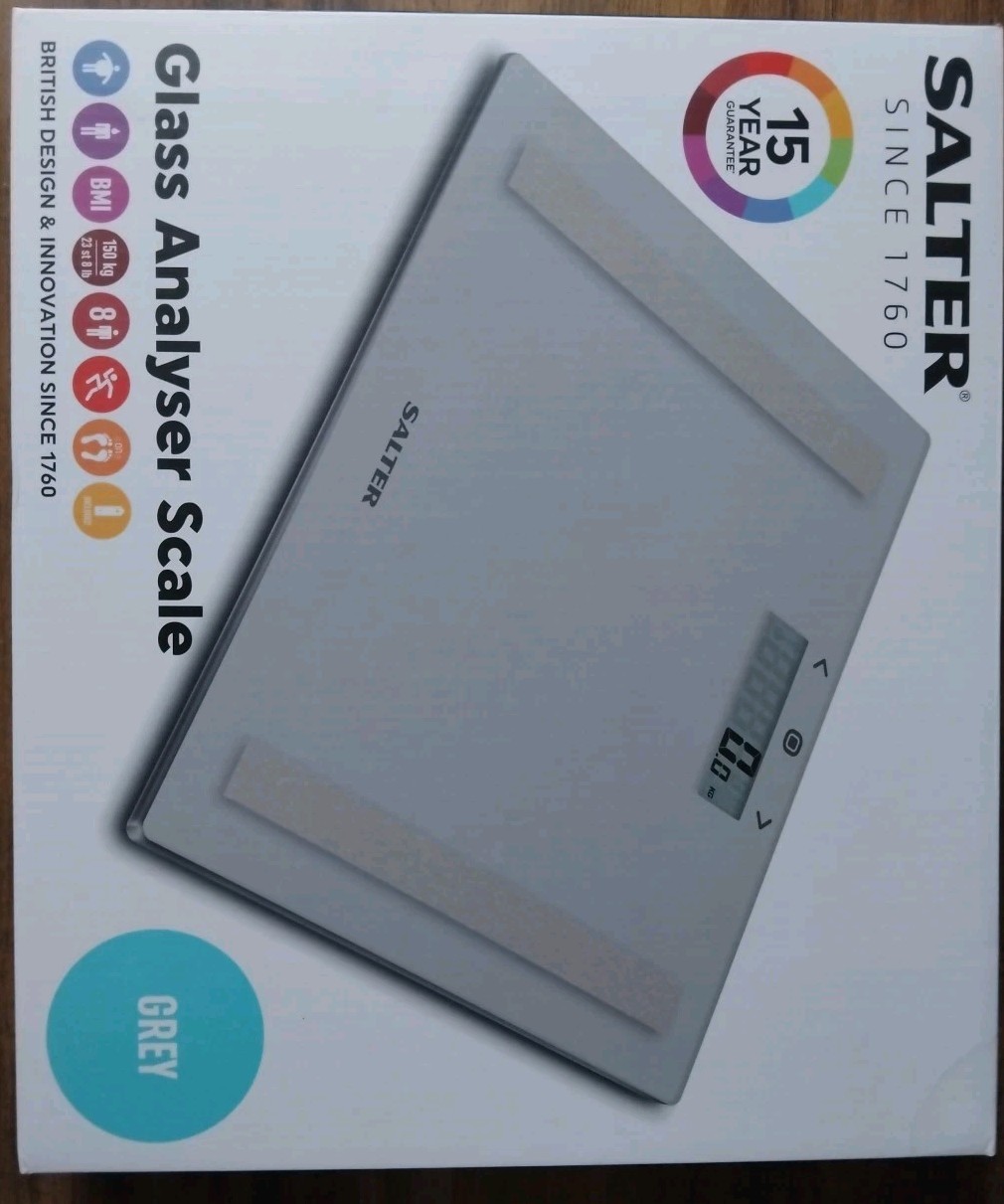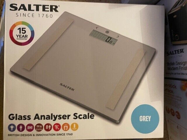 Salter Glass Analyser Scale KG Measure Weight Body Fat/Water BMI 8 User Bathroom