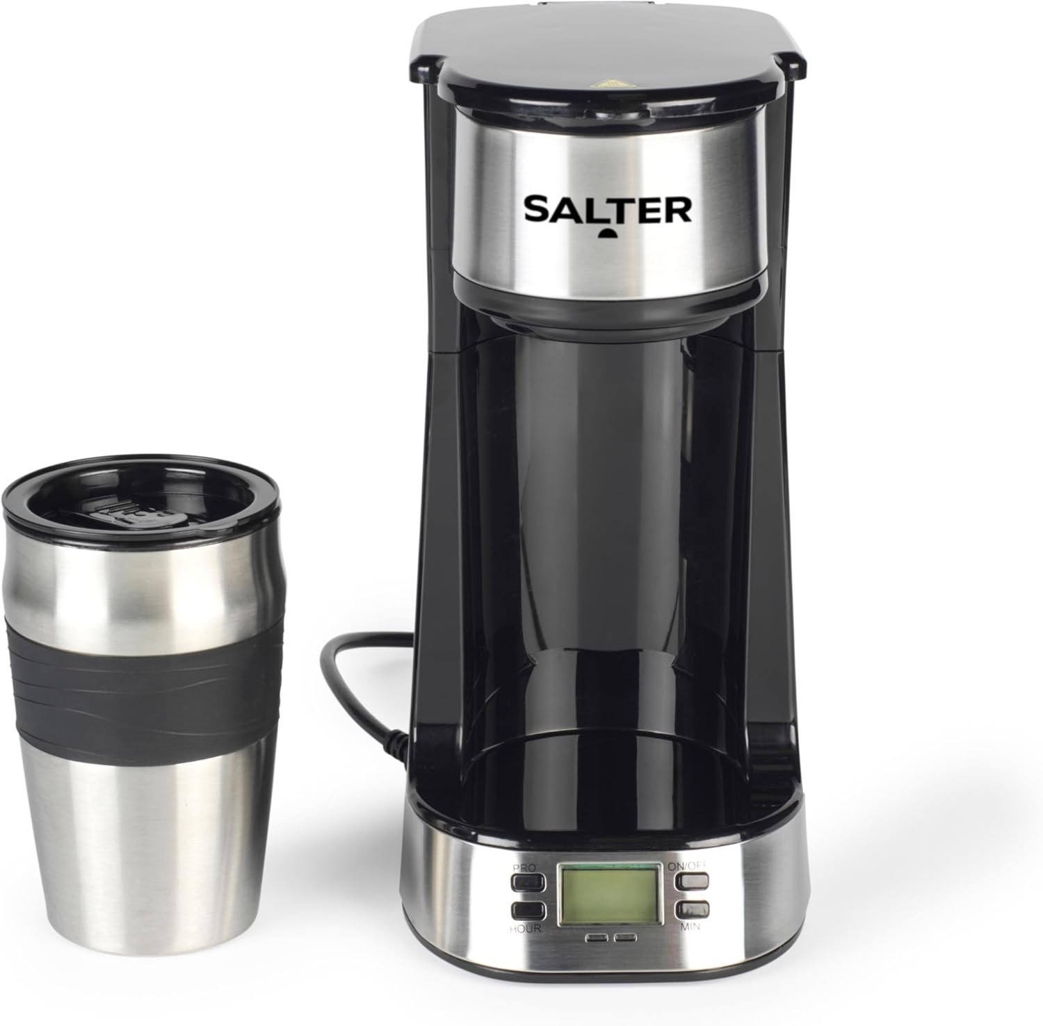 Salter Digital Coffee Maker ? One Cup Filter Coffee Machine, Washable & Reusable Filter, Includes 420ml Stainless Steel Travel Mug, 3-4 Minutes