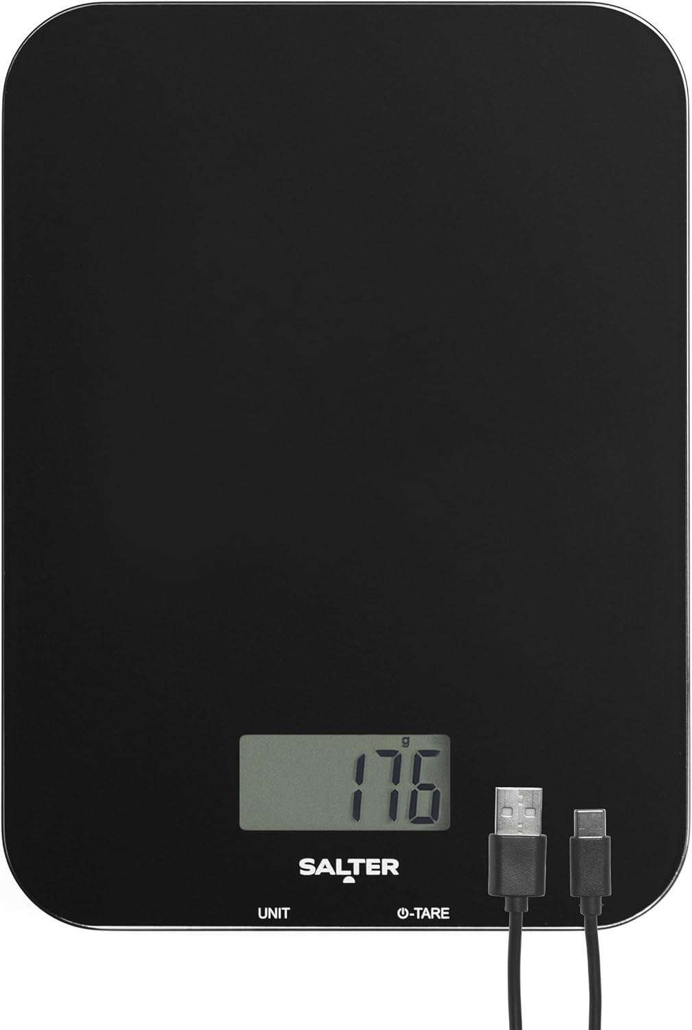 Salter Rechargeable Digital Kitchen Scale with Tare Function, 5kg Capacity, Meas