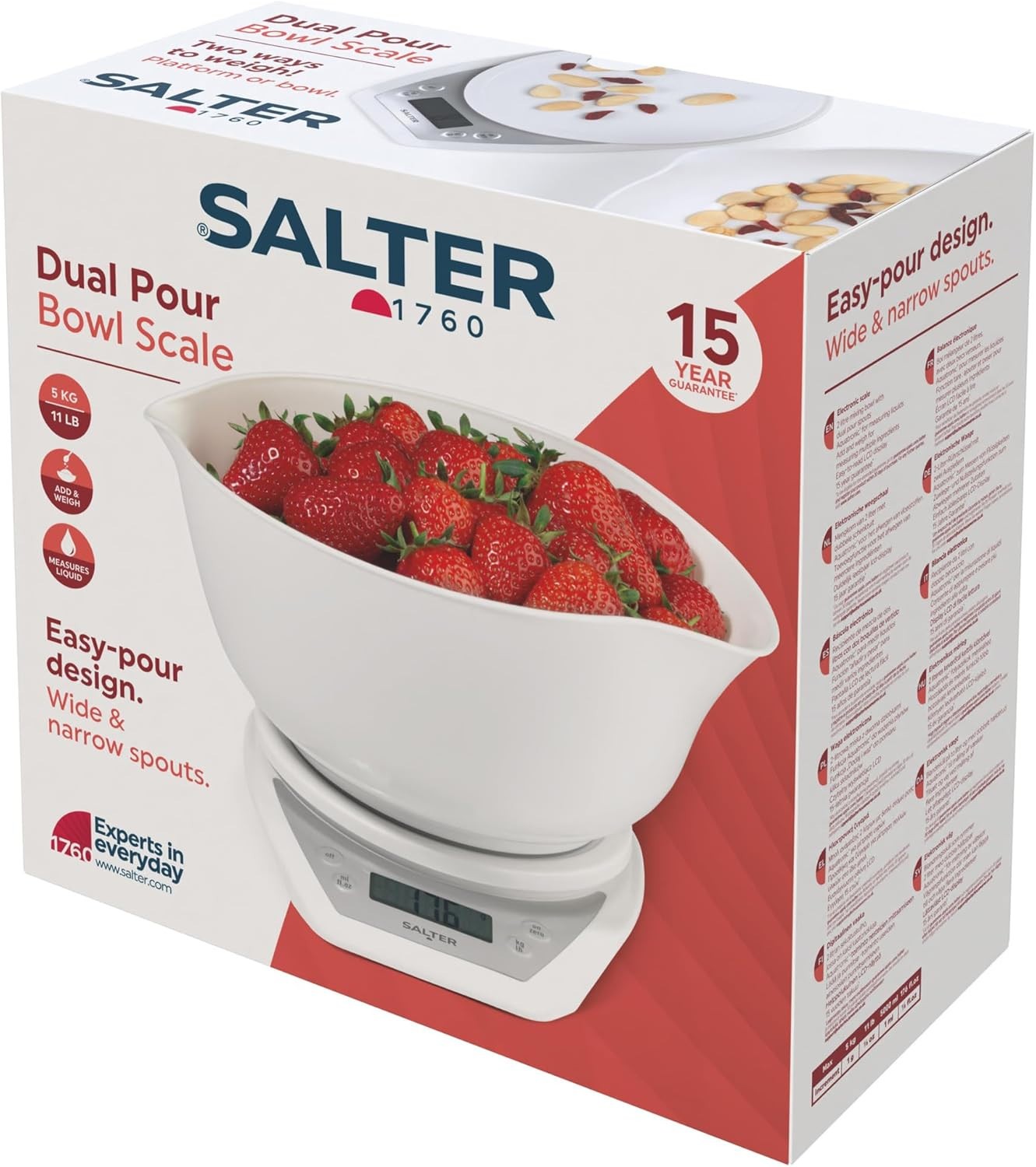 Salter Dual Pour Digital Kitchen Scale 2L Mixing Bowl LCD Display 5kg Capacity