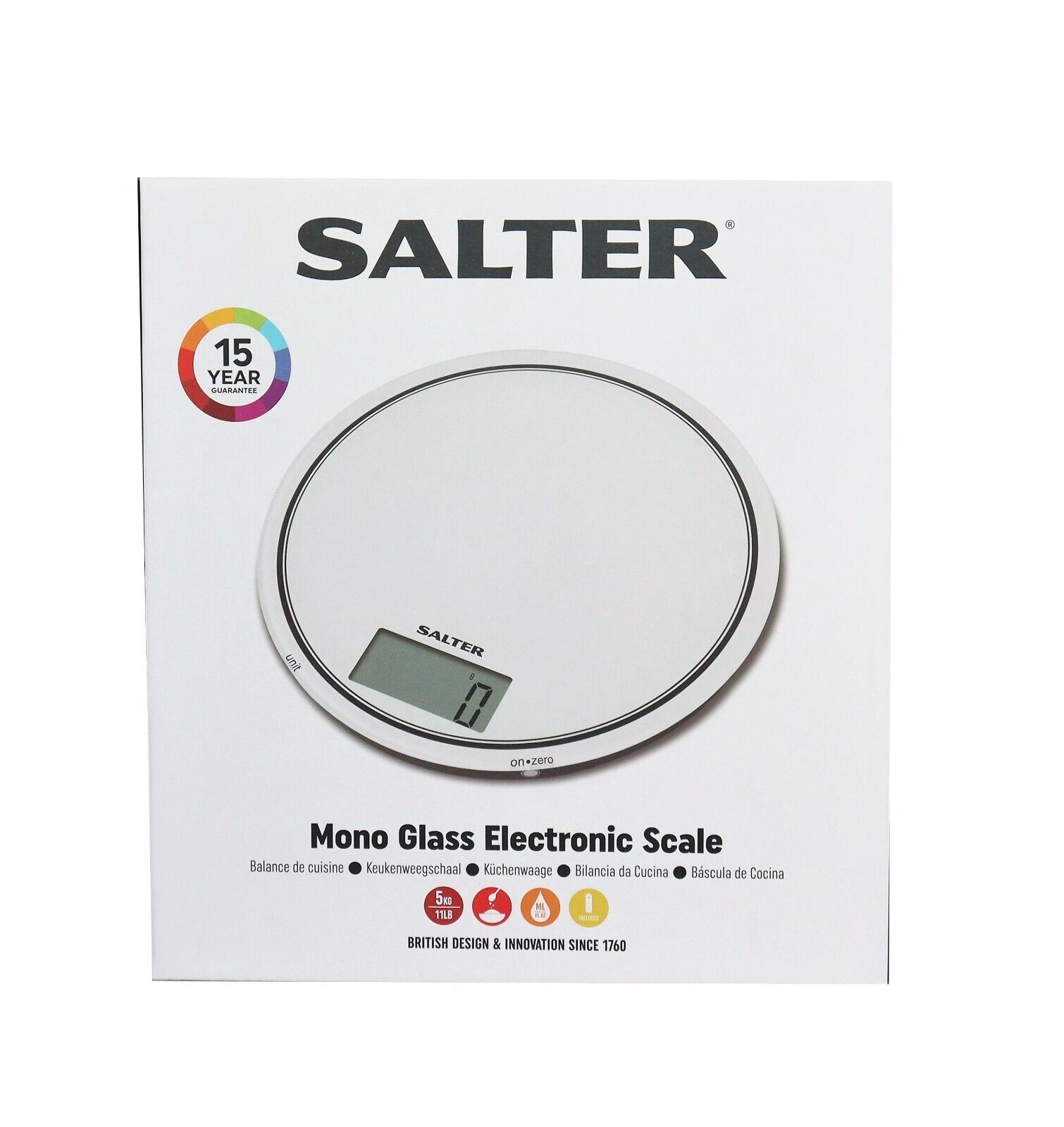 Salter Digital 5kg Kitchen Mono Glass Large Digit Electronic Scales White