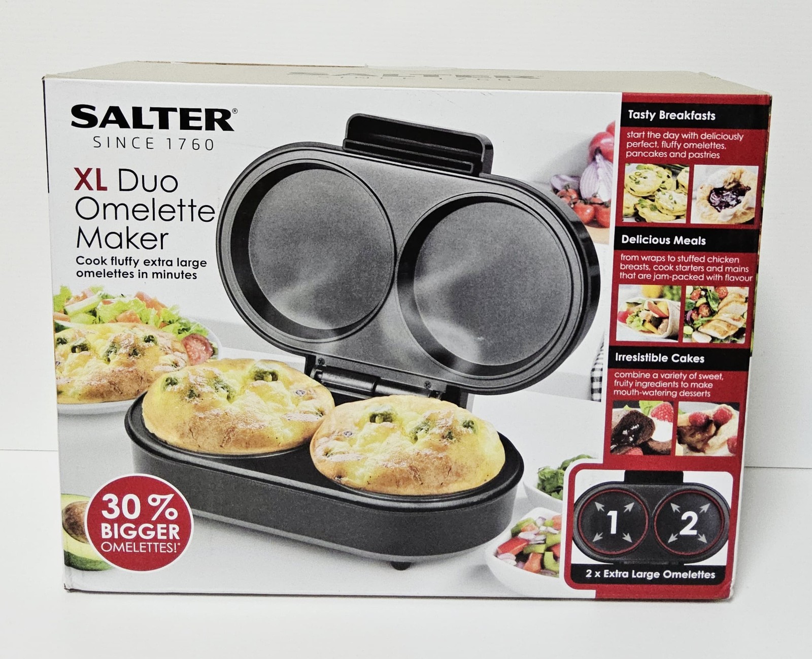 Salter EK4213S Extra Large Double Non-Stick Omelette Maker, 850W Duo Cook Healthy Snacks & Cakes, Easy Clean XL Plate, No Flip Egg Cooker, Make Low