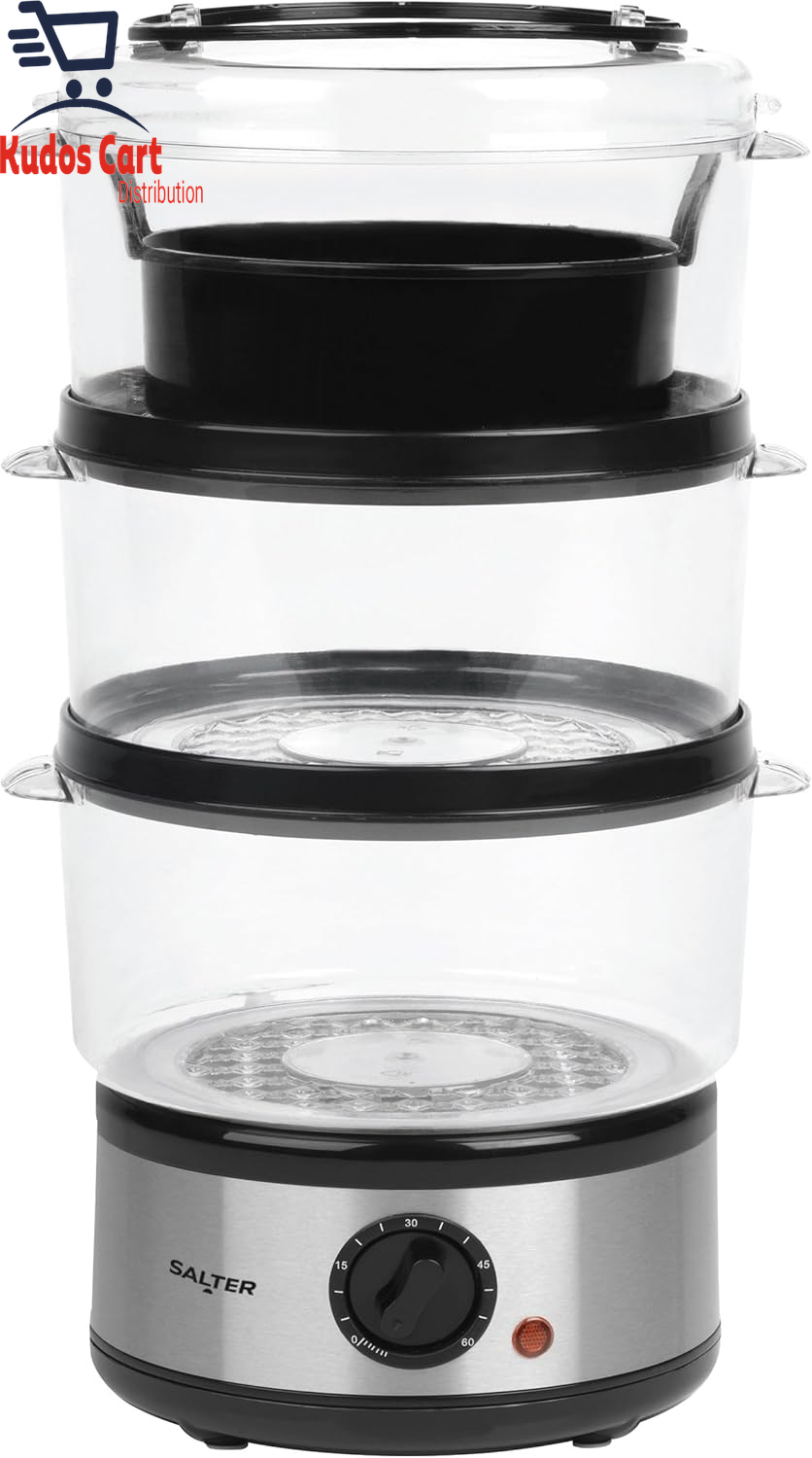 Salter 3-Tier Food Steamer â Compact Multi-Cooker with 3 Steam Baskets, Electric Egg Cooker with 8-Egg Capacity, Vegetable Steamer, 60-Minute Timer,