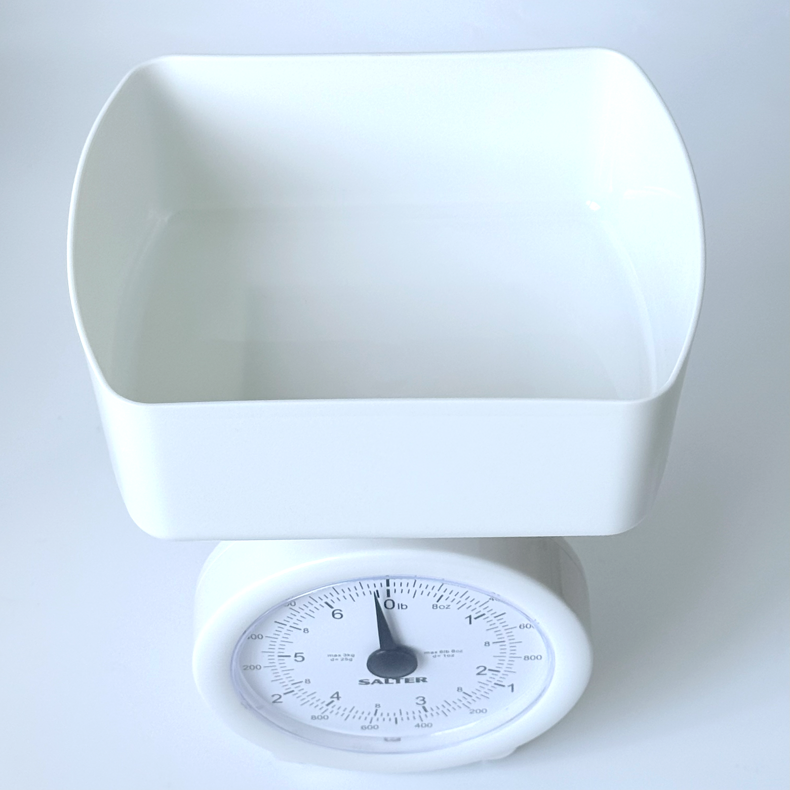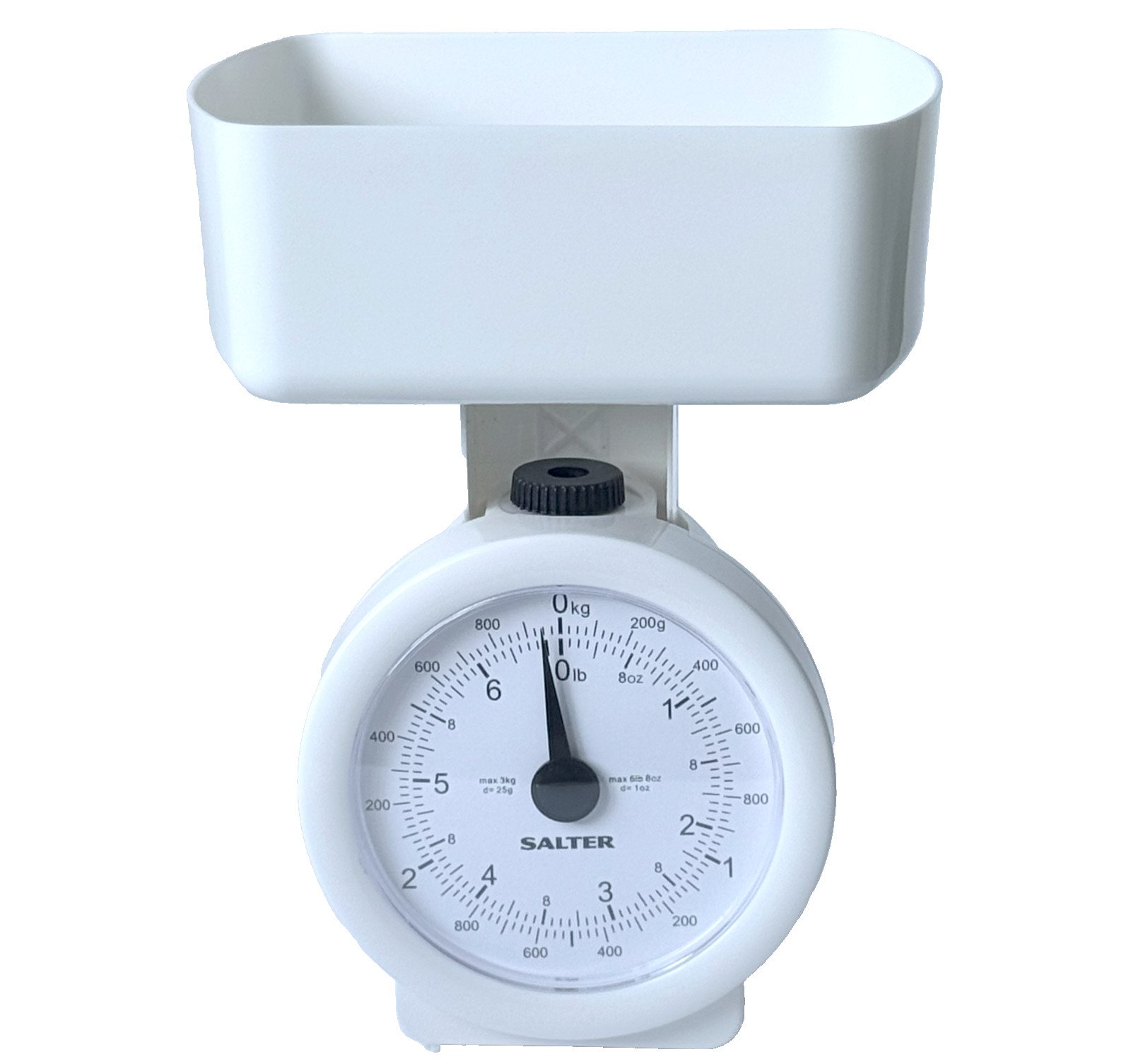 Salter Mechanical Kitchen Food Scale White 3kg Capacity No Batteries Needed