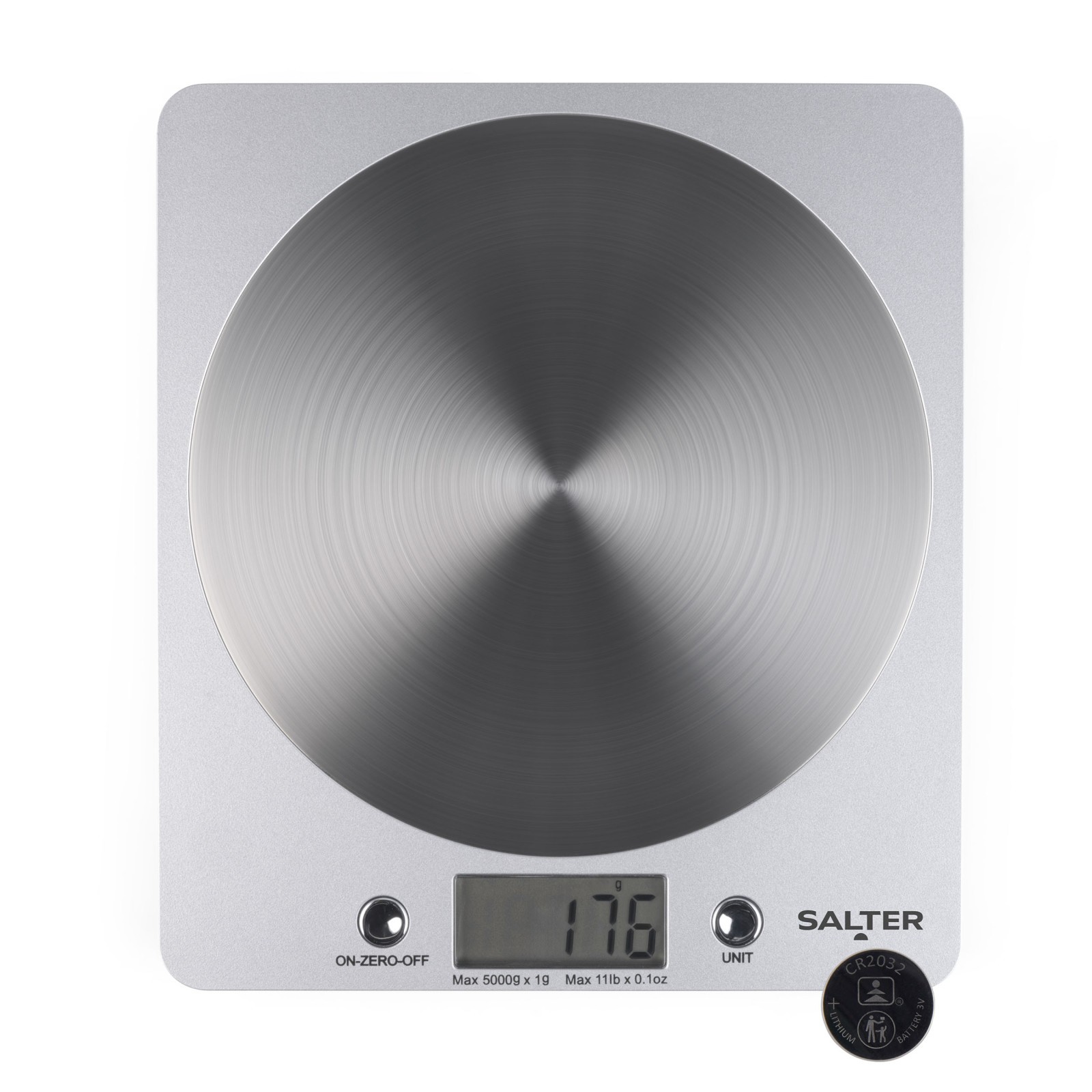 Salter 1036 BKSSDR Electronic Kitchen Scale â Digital Baking with 5kg Capacity, Food Weighing Stainless Steel Disc Platform, LCD Display,