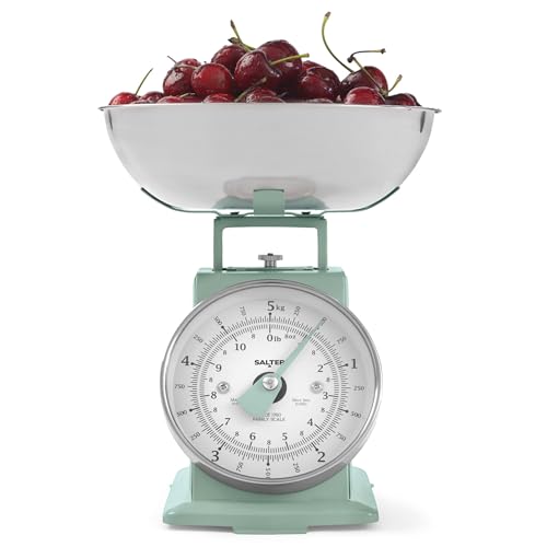 Salter Timeless Mechanical Kitchen Scale – Baking Scale with 5 kg Capacity, 1 Litre Dishwasher Safe Bowl, Analogue Food Scale, Classic Design, Easy Read Large Dial, 22cm Height, Sage
