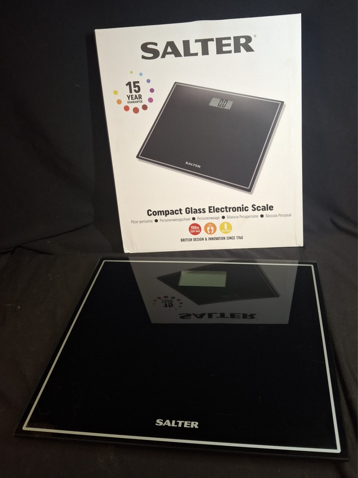 Salter Bathroom Scale Digital LCD Display Glass Platform Black Design New Boxed