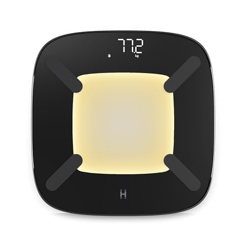 Homedics glo Body Analyser Scale - Bathroom Scales with Motion-Sensing Night Light, 100% Recycled Plastic Base, High-Precision Digital Display, lbs/kgs/st Weight Scale Options, Sleek Tempered Glass