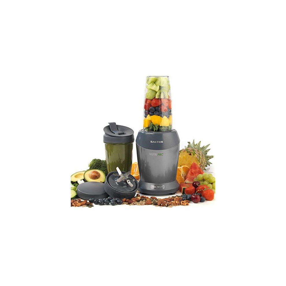 Salter EK2002V4SILVER NutriPro 1000 Blender - Multifunction Cold Beverage Smoothie Maker, Healthy Juicer, Nutrient Extractor, 2 Blending Cups (800ml/1L) & Stay Fresh Lids, On The Go Drinks, 1000W