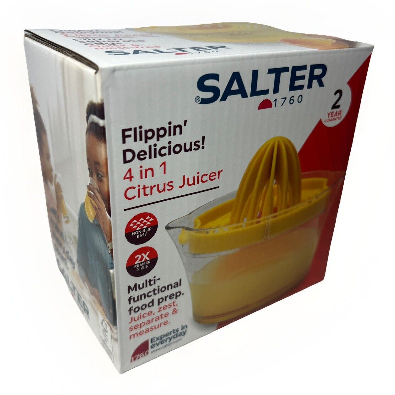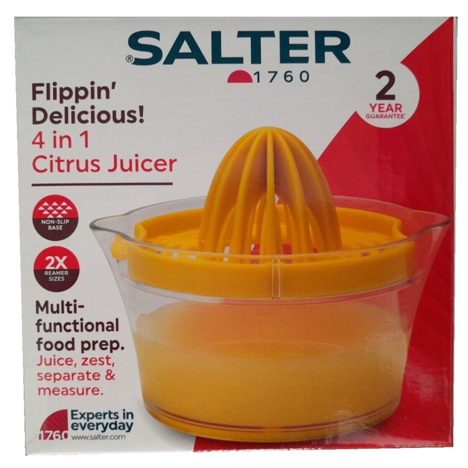 Salter 4-In-1 Citrus Juicer – BNIB -2 Reamer Sizes, Egg Separator, Non-Slip Base