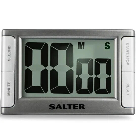 Salter Kitchen Timer Large Display Contour Digital Cooks Battery Powered Silver
