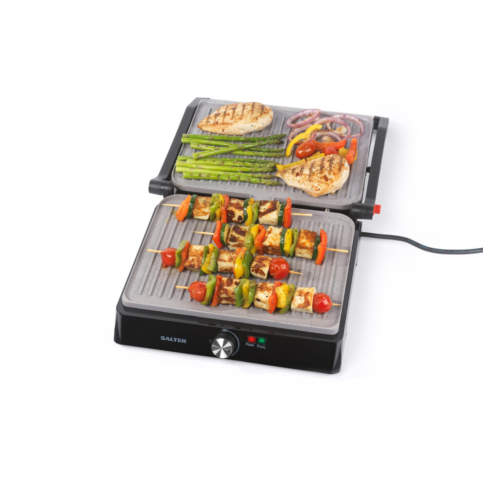 Salter Marblestone Health Grill ? Electric Fold-Out Grill & Panini Maker, Non-Stick XL Plates 29 x 23cm, Opens Flat To 180?, Adjustable Temperature