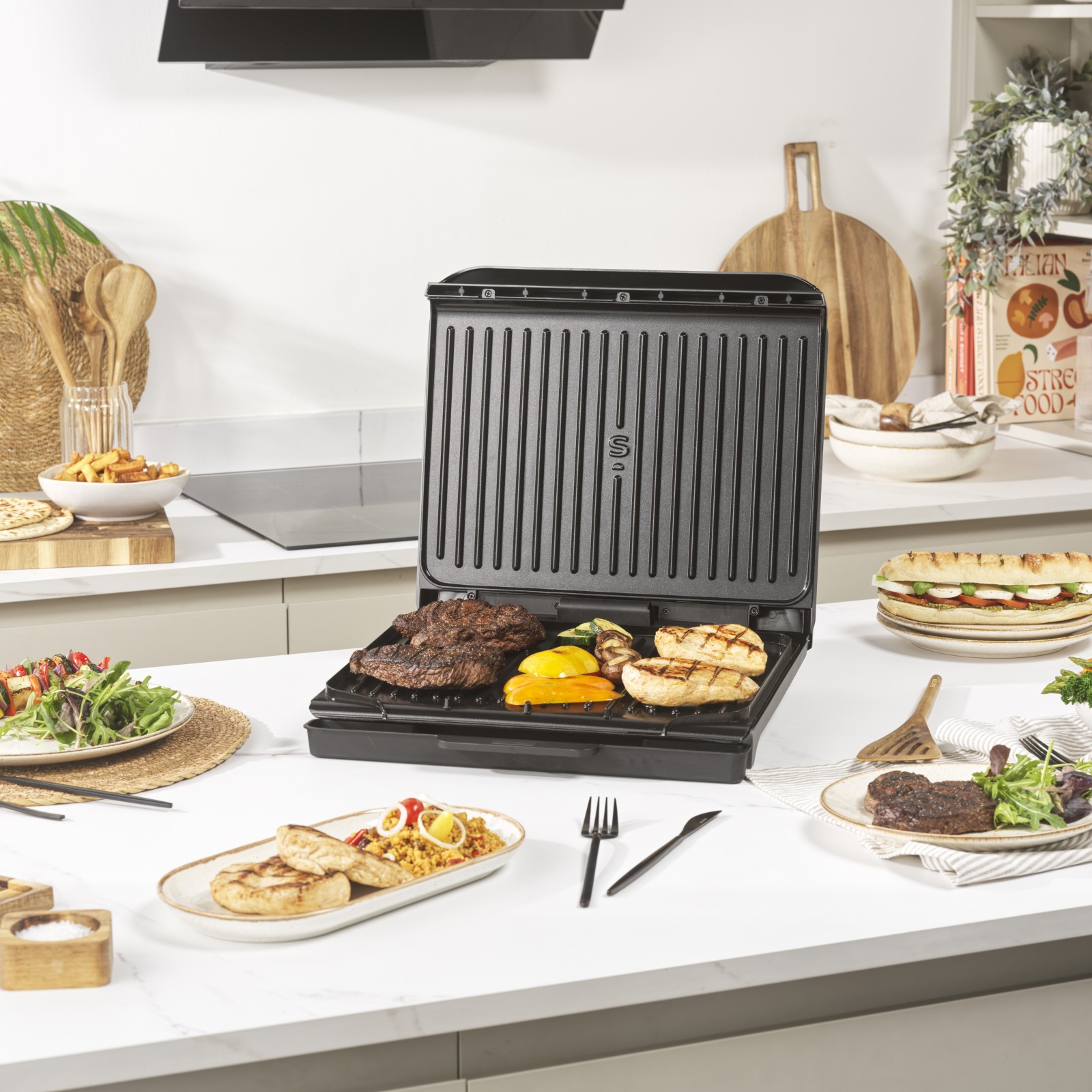 Salter ActiGrill Family – 8 Portion Large Health Grill, Floating Hinge To Cook Thicker Pieces Of Food & Deep Fill Paninis, PFAS-Free Non-Stick Cooking Plates, Automatic Temperature Control, 2000W