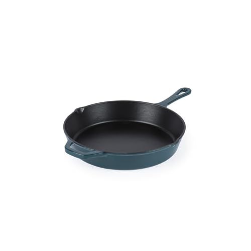 Salter Chester Cast Iron Frying Pan - 26cm Universal Skillet, Oven Suitable to 240 °C, Grill, Fry & Sear, Hob to Oven to Table Cooking Pot, Induction Suitable, PFAS Free, Green