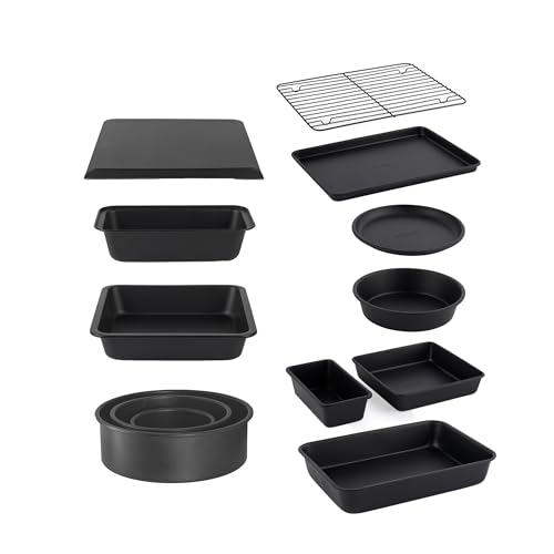 Salter Bakes All-in-One Bakeware Set - 13 Pieces, Cake Tins, Loaf Pans and Variety of Baking Trays, Cooling Rack Included, Non-Stick and PFOA-Free, Oven Safe up to 220°C